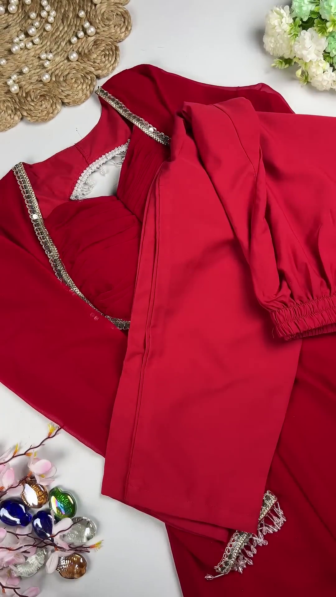 Base Color: Crimson Red β a timeless, passionate hue perfect for red-carpet events and formal celebrations.