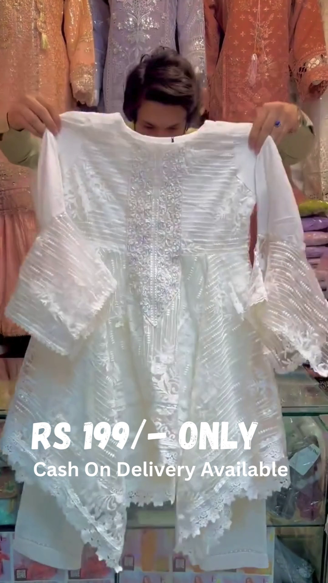 • Occasion & Styling Tips: Ideal for festive events, engagement ceremonies, or Eid celebrations. Pair this suit with statement earrings, nude or silver heels, and a sleek clutch to enhance the regal appeal. Keep the makeup soft and glowy to complement the dreamy white elegance.