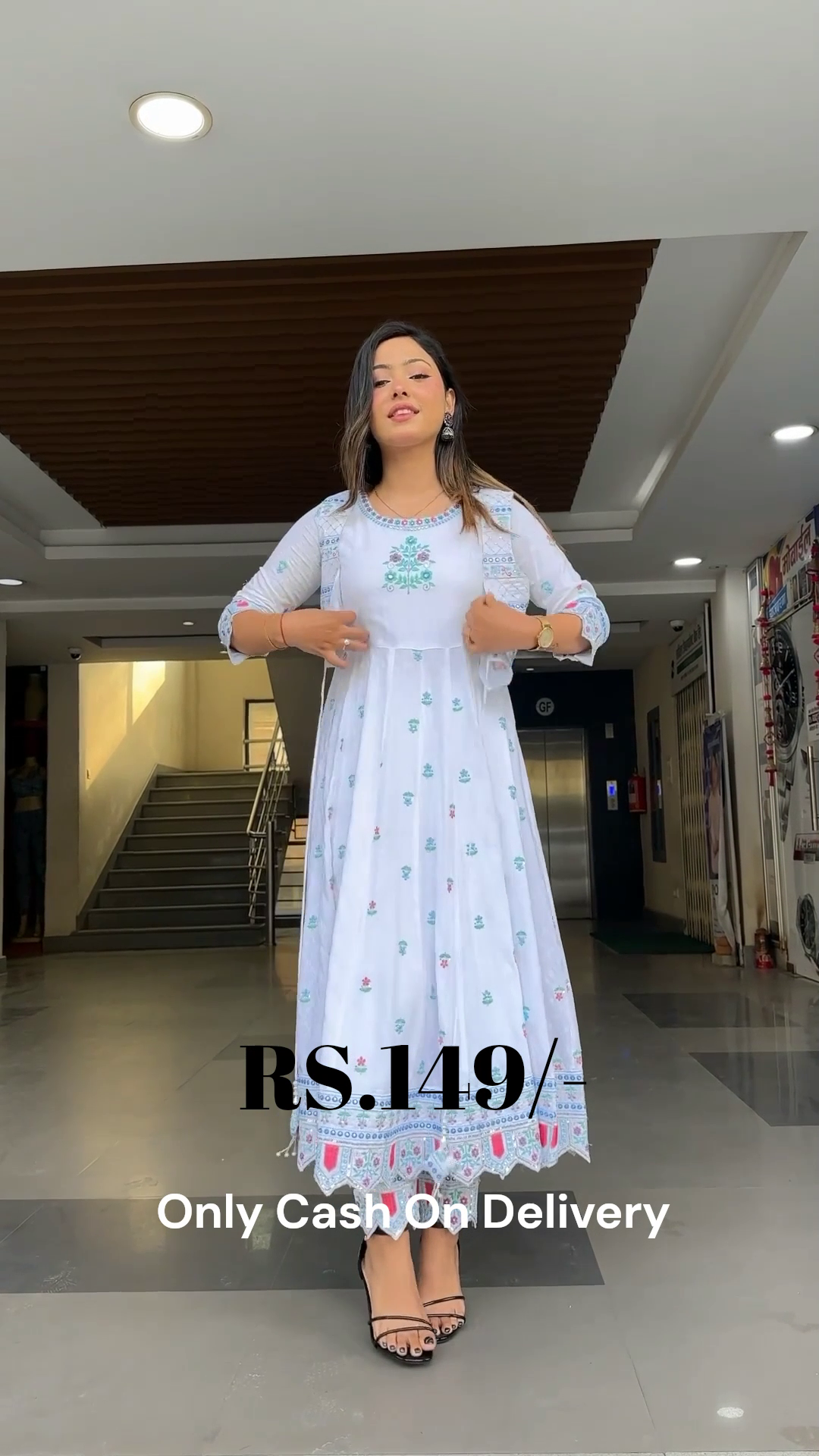✔️ Modern Ethnic Styling: Demonstrated with minimal accessories and black strappy heels to show its versatility for modern festive wear.