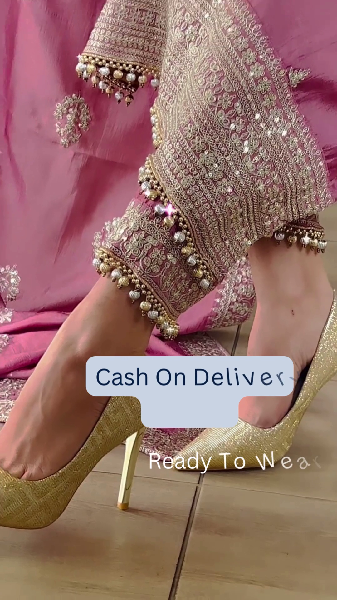 • ✔️ Festive Glow: Displays the overall luminous quality of the set, perfectly complemented by gold-toned footwear as seen in the styling.